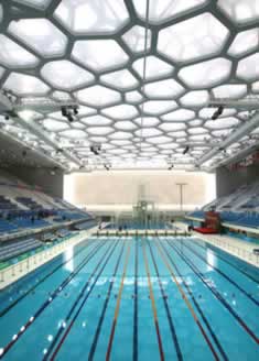 水立方其與國家體育場(俗稱鳥巢)分列于北京城市中軸線北端的兩側(cè),共同形成相對完整的北京歷史文化名城形象。2008年奧運(yùn)會期間,國家游泳中心承擔(dān)游泳、跳水、花樣游泳等比賽,可容納觀眾坐席17000座,其中永久觀眾坐席為6000座,奧運(yùn)會期間增設(shè)臨時性座位11000個(賽后將拆除)。賽后將建成為具有國際先進(jìn)水平的、集游泳、運(yùn)動、健身、休閑于一體的中心。