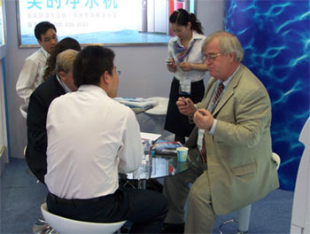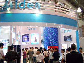 本次水展首次搶灘中國,在第一時間向美的凈水機伸出橄欖枝。公司董事會高瞻遠矚、高度重視,指示籌備小組一定要拿到最好的展位,并在參展方案上體現(xiàn)出美的品牌的大氣概與國際化。在世貿商城現(xiàn)場,美的展位選在進場口的第一位置點上,所有進場者的目光都會聚焦在高大的美的LOGO上,而在我們對面,大名鼎鼎的SIEMENS則氣勢明顯被壓低一頭;GE的展位雖然大,但位置被擠逼到最后一排,有些強努末勢的味道;飛利浦、東麗、熊津、美國怡口則完全被淹沒在眾多展位之中了。
