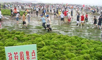 青島爆發(fā)水污染 萬人打撈滸苔保奧運
