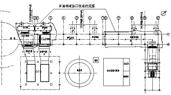 (3)保護性拆除2軸至3軸除混凝土底板外的煙道,安裝脫硫裝置的旁路檔板門、膨脹節(jié)和其聯(lián)接鋼煙道。