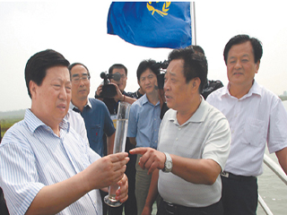 9月10日,全國重點(diǎn)流域水污染防治工作會議在山東濟(jì)寧召開。會前,環(huán)境保護(hù)部部長周生賢率領(lǐng)有關(guān)負(fù)責(zé)同志和來自22個省的參會代表,在山東省副省長李兆前的陪同下,對山東境內(nèi)淮河流域暨南水北調(diào)沿線水污染防治工作情況進(jìn)行考察。對擔(dān)負(fù)著南水北調(diào)工程重要調(diào)蓄功能的南四湖流域的變化和總結(jié)出來的“治、保、用”經(jīng)驗(yàn),周生賢一行十分重視和贊賞。