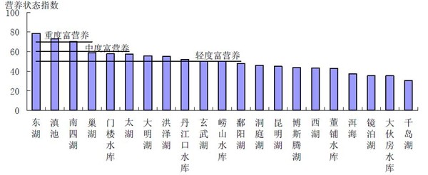 《說明》稱,水體富營養(yǎng)化評價是湖泊、水庫水質評價的重要內容之一,常用水質營養(yǎng)狀態(tài)指數(TLI)表征。根據中國環(huán)境監(jiān)測總站2009年1月《全國地表水水質月報》,千島湖營養(yǎng)狀態(tài)指數在全國重點湖泊、水庫中最低,如下圖。