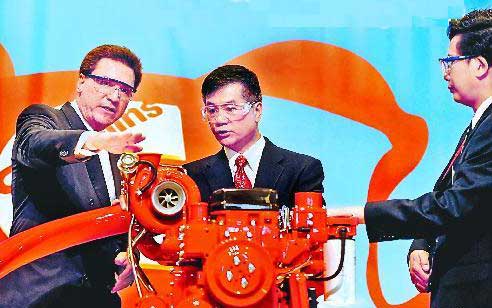![]() 駱家輝(中)參觀康明斯發(fā)動機公司 |