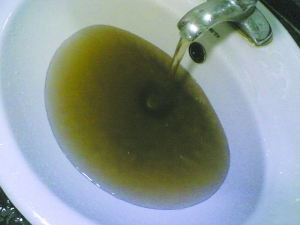 打開(kāi)水龍頭,自來(lái)水很黃很黑