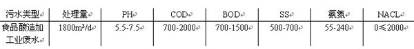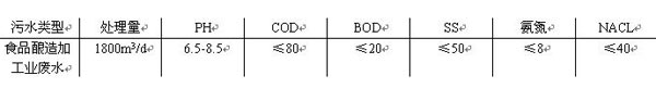 污水性質(zhì):食品釀造加工業(yè)廢水,原水質(zhì)檢測數(shù)據(jù):(根據(jù)甲方提供水樣并參照同行業(yè)廢水相關(guān)水質(zhì)規(guī)定)