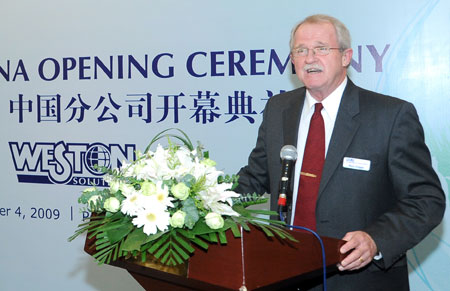 2009年11月4日,享有“整合綠色方案的全球伙伴”美譽(yù)的美國Weston Solutions公司正式落戶上海!11月4日下午4點(diǎn),WESTON上海分公司開業(yè)儀式在美國賓夕法尼亞中心會(huì)議廳舉行,有關(guān)政府代表、行業(yè)協(xié)會(huì)、環(huán)保企業(yè)及研究機(jī)構(gòu)代表應(yīng)邀出席活動(dòng)。美國駐上海總領(lǐng)館首席商務(wù)領(lǐng)事高大衛(wèi)、上海綠色建筑協(xié)會(huì)副會(huì)長兼秘書長汪維、WESTON高級(jí)副總裁Donald W. Grogan先生和國際部總經(jīng)理Michael G. Cosmos先生分別在典禮上致辭。