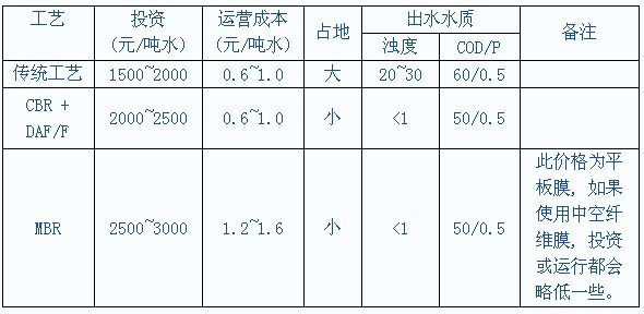 CBR+DAF/F脫氮除磷效果好,MBR工藝處理能力強(qiáng),但費(fèi)用略高