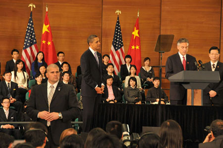 ![]() 奧巴馬總統(tǒng)在上海科技館對話現(xiàn)場 |