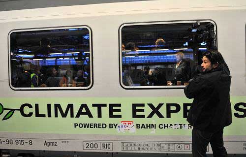 ![]() 12月5日,在比利時(shí)布魯塞爾火車(chē)站,“氣候快車(chē)”準(zhǔn)備出發(fā) |
