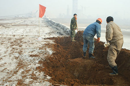 ![]() 赤泥是氧化鋁工業(yè)生產(chǎn)過程中產(chǎn)生的強(qiáng)堿性有害廢渣。中鋁山東分公司氧化鋁廠根據(jù)今年赤泥堆場堆存規(guī)劃及堆場建設(shè)、安全隱患治理、環(huán)境保護(hù)等事宜,全力做好安全施工。圖為員工們正在奮力筑壩 |