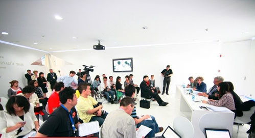 | 瑞士日內(nèi)瓦、巴塞爾、蘇黎世三位市長在現(xiàn)場向記者發(fā)表演講 |