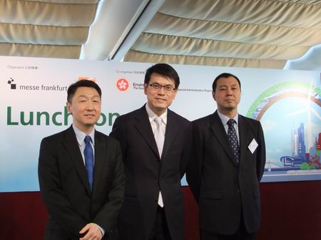 ![]() 左: 香港貿(mào)易發(fā)展局副總裁周啟良 中: 香港特區(qū)政府環(huán)境局局長邱騰華 右: 法蘭克福展覽(上海)有限公司總經(jīng)理曹建生 |