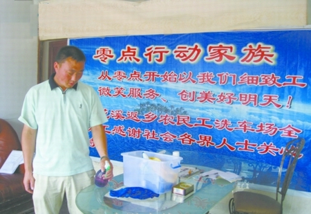 農(nóng)民工辦洗車場自創(chuàng)環(huán)保洗車法300毫升水洗一輛車