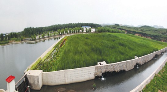 一期工程占地130畝,其中人工濕地約100畝,沉淀池占地10畝,沉淀池建在丹河河道,蓄水量達3萬立方米。沉淀池將攔截的丹河水沉淀后,通過配水渠均勻地送到人工濕地,然后通過濕地環(huán)境來凈化污水。人工濕地是由人工建造和控制運行的與沼澤地類似的地面,將污水有控制地投配到經(jīng)人工建造的濕地上,利用土壤、人工介質、植物、微生物的協(xié)同作用,對污水進行生態(tài)處理的一種技術。