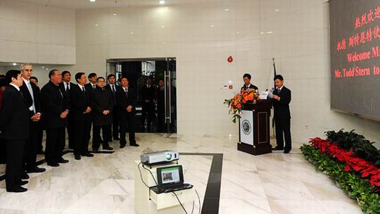 國(guó)家發(fā)改委解振華副主任和美國(guó)氣候變化特使托德·斯特恩先生一行訪問(wèn)天津排放權(quán)交易所,交易所總經(jīng)理高正琦匯報(bào)交易所工作進(jìn)展。