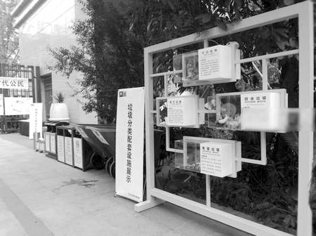 記者看到,在金域藍(lán)灣小區(qū)花園、各單元門口、地下車庫等地都配置了標(biāo)有廚余垃圾、可回收垃圾、其他垃圾等明顯標(biāo)志的垃圾桶。此外,還有一個(gè)專門收集廢舊電池等有害垃圾的垃圾桶。居民可根據(jù)這些標(biāo)志投放垃圾。