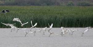 | 黑河濕地內(nèi),一群白鷺振翅欲飛 |