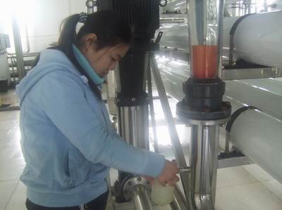| 飛龍公司污水處理廠員工在抽取水樣 |