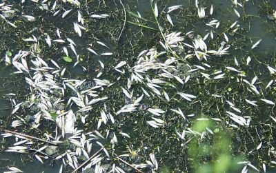 “現在河里的死魚算少的了,這兩天幾艘環(huán)衛(wèi)船來撈過了,當時死魚才多呢,有人看到船上裝了10大桶死魚,至少有數萬條!”在西祠論壇上,網友“魚鱗閃亮”說道。記者在現場看到,死魚的河段范圍北起水西門大橋,南至鳳臺橋,全長約兩公里。從現場來看,漂白死魚主要是七八厘米長的蒼條魚,經過昨天環(huán)衛(wèi)部門和沿線市民一天的撿撈,已經少了不少。剩下的死魚大量擱淺在河邊淺灘上,由于天氣炎熱,已經開始發(fā)臭。