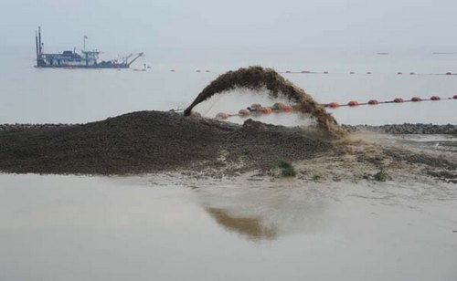 巢湖清淤工程是國務(wù)院“三河三湖”水污染治理重點國債項目之一,2000年初啟動。整個“清淤、吹填”工程從安徽省巢湖市居巢區(qū)中垾鎮(zhèn)孫村段開始,全長27公里(寬度100米左右),分三期進行,至烔煬鎮(zhèn)烔煬河口止。一、二、三期所吹填的人造濕地將連成一體,不僅改善了市民飲用水水源地水質(zhì),同時改善了巢湖生態(tài)環(huán)境。圖為清淤船正在居巢區(qū)中垾鎮(zhèn)鏡內(nèi)巢湖濱湖沿岸吹填人造濕地!