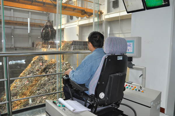 記者在光大國際常州垃圾焚燒發(fā)電廠看到,這座日均處理垃圾1050噸的現(xiàn)代化企業(yè),生產(chǎn)環(huán)節(jié)均交由電腦機(jī)械化自動操作。所有垃圾被堆放在一個5層樓高的、密封的垃圾倉內(nèi)。垃圾倉的屋頂采用彩鋼瓦扣接結(jié)構(gòu),底部則由厚重的混凝土澆筑而成,四周布置有4組強(qiáng)勁的抽風(fēng)機(jī)不間斷的抽風(fēng)。垃圾車通過垃圾倉外側(cè)僅有的一個與外界聯(lián)通的平臺,將垃圾傾倒入內(nèi)。兩名工作人員坐在落地玻璃窗前,操縱起兩架六爪的鐵臂抓斗,將倉內(nèi)的垃圾逐一送入焚燒爐。