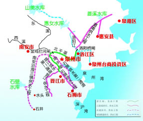 策略:通過(guò)引水通道將晉江水引到晉江、石獅、南安沿海片區(qū)。