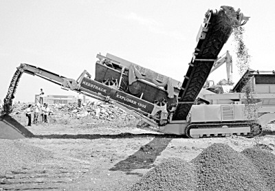 ![]() 圖為移動(dòng)遙控式建筑垃圾破碎篩分設(shè)備,它可以同時(shí)篩分出四種粗細(xì)不同的制磚、修路等工程再利用原材料,使城市建筑垃圾循環(huán)再利用率達(dá)到90%以上。 |