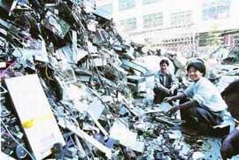 ![]() 廣東某地廢電腦堆積如山的景象 |