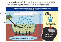 ![]() 電子垃圾中的鉛污染水示意圖 |