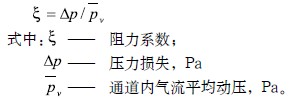 “通道”指試驗(yàn)管道。當(dāng)在不同的實(shí)驗(yàn)室檢測(cè)同一臺(tái)消聲器時(shí),如果各實(shí)驗(yàn)室的試驗(yàn)管道截面積不同,則相同的試驗(yàn)管道流速將對(duì)應(yīng)不同的消聲器片間流速,壓力損失就會(huì)不同,而通道內(nèi)氣流平均動(dòng)壓相同,導(dǎo)致各實(shí)驗(yàn)室的阻力系數(shù)檢測(cè)數(shù)據(jù)缺少可比性。