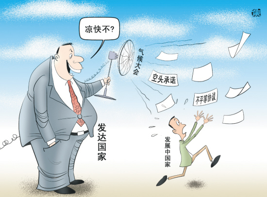 然而英國(guó)《衛(wèi)報(bào)》卻聲稱(chēng),哥本哈根氣候峰會(huì)不期外泄了一份“丹麥提案”,擺不上臺(tái)面的,是賦予發(fā)達(dá)國(guó)家在未來(lái)氣候變化談判上更大話(huà)事權(quán),并揚(yáng)棄《京都協(xié)議書(shū)》減排原則。“提案”將應(yīng)付氣候變化的融資撥款大權(quán),交予了由西方主導(dǎo)的世界銀行,令發(fā)達(dá)國(guó)家可“根據(jù)發(fā)展中國(guó)家的減排行動(dòng)”,來(lái)決定是否向發(fā)展中國(guó)家提供資金援助。此外,一些發(fā)達(dá)國(guó)家希望將“碳關(guān)稅”納入氣候協(xié)議。換句話(huà)說(shuō),既得利益者在“分贓”。
