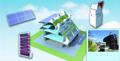 利用太陽能光伏板和熱力電力轉(zhuǎn)化器收集電能供給建筑日常使用,收集的熱能將轉(zhuǎn)化為建筑制冷動力