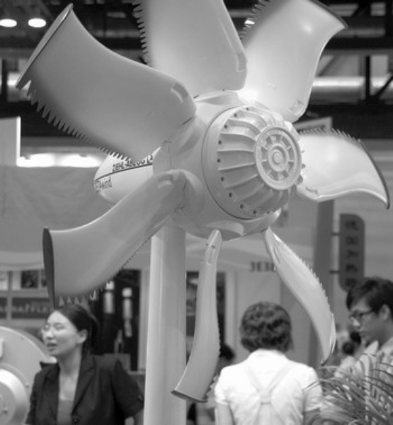 在近日舉行的中國國際清潔能源博覽會上拍攝的風(fēng)機(jī)設(shè)備