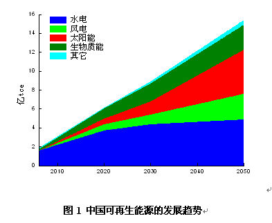 由于我國能源消費總量的急劇增長,可再生能源(主要是風能、太陽能和生物質能)在2020年以前很難在總能源平衡中占有一定份額的比例,因此2020年以前可再生能源在份額上不能解決我國能源的主要問題,這個情況和歐洲的其他國家在國情上有很大區(qū)別。一些歐洲國家,他們總能耗已經(jīng)不再增長(或增長很少),可再生能源的發(fā)展逐步替代目前在役的化石能源。而我國卻處于總能耗急劇增長之中,單是發(fā)電設備(其中主要是燃煤發(fā)電),近年來每年裝機容量增長接近1億kW。在這個高速增長量中,可再生能源所能起的作用是有限的,下面分析其中幾種主要可再生能源的情況。