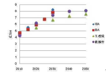 即使考慮了各種可再生能源、核電、天然氣、石油需求等較快發(fā)展,并充分考慮節(jié)能的潛力和節(jié)儉的生活方式,2050年煤炭在一次能源構成中仍占35%以上,而年煤炭需求量不會低于20億tce/a,未來40年(2010~2050)累計消耗的煤炭總量將在900億tce以上(圖5)。資源和環(huán)保呼喚煤的清潔、高效、低碳利用!