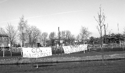 當(dāng)?shù)孛癖姷拿^直指荷蘭政府和石油巨頭殼牌,它們打算在距離巴倫德勒克鎮(zhèn)1英里的一個(gè)將開(kāi)采完的天然氣田封存1000萬(wàn)噸二氧化碳。這個(gè)氣田將在2010年到2014年間開(kāi)采完,它被看成封存二氧化碳的理想場(chǎng)所,荷蘭政府想把這里建成陸上封存二氧化碳示范地。而殼牌則輕而易舉地贏得了3000萬(wàn)歐元的項(xiàng)目,負(fù)責(zé)建設(shè)。當(dāng)?shù)孛癖娮呱辖诸^游行,反對(duì)將碳封存地址選在家門口。荷蘭政府和殼牌公司考慮到民眾的不滿情緒已經(jīng)宣布將這個(gè)項(xiàng)目推遲3年。
