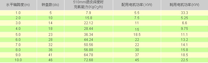 在標(biāo)準(zhǔn)狀況下:工作水深5.2m,浸沒(méi)水深51cm,轉(zhuǎn)速:55rpm,加設(shè)導(dǎo)流板。