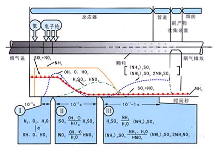 電子束氨法煙氣脫硫脫銷技術(shù)原理圖: