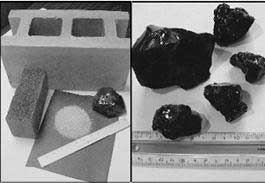 玻璃化將廢物與玻璃等物質(zhì)混合在熱等離子體的高溫作用下熔融形成一種穩(wěn)定的玻璃態(tài)物質(zhì),原廢物中的有害金屬則包封在玻璃體中,即可達(dá)到穩(wěn)定化、減量化及資源化目的。玻璃化最初是用來處理放射性廢物,在這個過程中高放射性廢物的液體和泥漿與玻璃顆粒進(jìn)行混合并加熱到非常高的溫度來產(chǎn)生熔融玻璃態(tài)混合物,當(dāng)混合物冷卻時它就會變?yōu)橐环N堅硬且穩(wěn)定的玻璃體,這種玻璃體將放射性元素包封在內(nèi)部,并阻止其遷移到水和大氣中。一般其反應(yīng)機(jī)制是利用SiO2網(wǎng)絡(luò)結(jié)構(gòu)形成難溶物質(zhì),見圖3。一般可從玻璃體的特性探討其處理效果,其特性項目包括灼燒減量、強(qiáng)度、空隙率、浸取毒性等。得到的玻璃體經(jīng)過一定的或者不經(jīng)過加工可以用來作為建筑材料或者陶瓷材料,這依賴于所處理的廢物的化學(xué)成分。圖4為美國IET公司經(jīng)過PEM技術(shù)處理得到的玻璃體和用玻璃體加工的建筑材料。