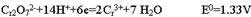 重鉻酸鉀在強(qiáng)酸介質(zhì)中的氧化反應(yīng)式為: