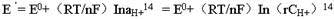 式中:E‘——條件電極電位;E0——標(biāo)準(zhǔn)電極電位;R——氣體常數(shù);.8.314J/K?mol;T——絕對(duì)溫度;n——化學(xué)反應(yīng)的當(dāng)量數(shù);F——法拉第常數(shù),為9.65×104C/mol;r——活度系數(shù);a——活度;C——濃度。