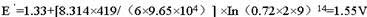 回流加熱時(shí),反應(yīng)溫度為140℃,反應(yīng)體系中硫酸濃度為9mol/L,其活度系數(shù)為0.72,故此時(shí)的條件電極電位為: