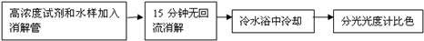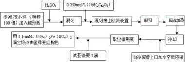 水樣在硫酸溶液中,與已知過量的重鉻酸鉀在以硫酸銀作催化劑和硫酸汞作為消除氯離子干擾的掩蔽劑存在下,進(jìn)行固定時(shí)間的加熱回流。在回流時(shí)間內(nèi),有部分重鉻酸鹽被所存在的可被氧化的物質(zhì)所還原。以試亞鐵靈作指示劑,用硫酸亞鐵銨滴定剩余重鉻酸鹽,由消耗的重鉻酸鹽量計(jì)算COD值。操作步驟見圖1: