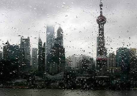 受臺風(fēng)“莫拉克”影響,上海市陸家嘴地區(qū)籠罩在風(fēng)雨中 |