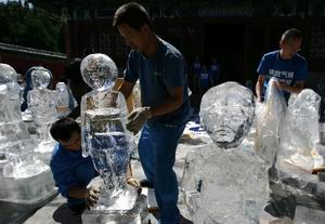 北京展示冰雕呼吁關(guān)注全球氣候變化