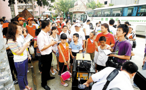 9歲的小姑娘咪咪一點(diǎn)也不示弱,她手頭拿著一份宣傳資料,站在座位上搶著回答問題。“灰霾天氣太多了會讓肺得病的!”小姑娘說得還有板有眼。這一下讓她成了大巴里的焦點(diǎn)。咪咪說,自己是一個(gè)環(huán)保“老兵”了,媽媽從6歲開始就教育自己不要浪費(fèi)水,要對垃圾進(jìn)行分類;在學(xué)校里,同學(xué)之間都進(jìn)行環(huán)保比較,看看誰更節(jié)約。咪咪自豪地告訴大巴車?yán)锏氖迨灏⒁、爺爺奶奶?ldquo;我是亞軍!”