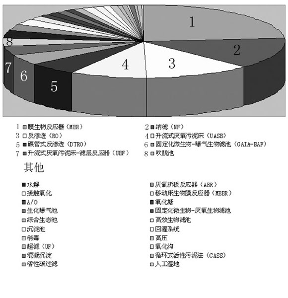 根據(jù)藍(lán)白藍(lán)網(wǎng)的統(tǒng)計(按照技術(shù)單元獨立計算,每個處理系統(tǒng)中只要出現(xiàn)這種技術(shù)就計算一次項目數(shù)),截至今年3月,各個技術(shù)單元在城市生活垃圾滲濾液處理工藝方法中的統(tǒng)計數(shù)據(jù)如附表。表中排名反映了這些工藝方法在城市生活垃圾滲濾液處理行業(yè)市場中應(yīng)用的廣泛程度,甚至從某種程度上反映了某工藝技術(shù)應(yīng)用的成熟度。