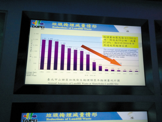 數(shù)據(jù)顯示:2000年,臺(tái)北家庭日均產(chǎn)生垃圾2970噸;到2009年,這個(gè)數(shù)字減少了三分之二,為1009噸。家庭垃圾減量67%的同時(shí),資源回收比例從2.4%增加到了45%。更驚嘆的是,臺(tái)北今年就有望實(shí)現(xiàn)垃圾“零填埋”。