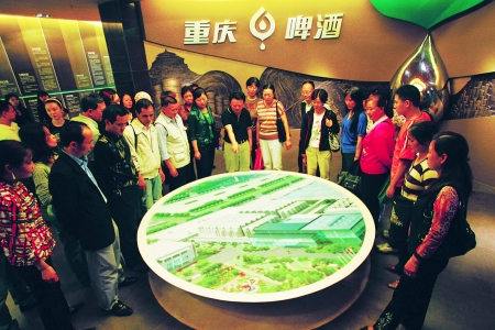 上午9點半,體驗團的全體人員準時到達重啤大竹林分公司,在重啤集團副總經(jīng)理陳太夫和重啤各部門負責人的帶領下,參觀了重啤的檢測室、灌裝車間和啤酒博物館。