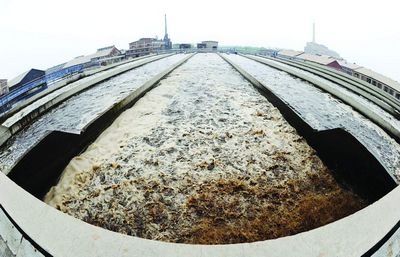 7月6日,營(yíng)口造紙廠被環(huán)保部掛牌督辦。7月12日,記者來(lái)到緊臨大遼河北岸的造紙廠,透過(guò)一些廠房開(kāi)著的大門和窗戶,記者能清楚地聽(tīng)到機(jī)器的轟鳴聲,企業(yè)自備電廠的煙囪也正冒著煙。廠方工作人員引領(lǐng)記者來(lái)到了雖已投入使用、卻并未達(dá)標(biāo)排放的污水處理廠。黑色的廢水在設(shè)施內(nèi)嘩嘩流淌著,泛著白色的泡沫,F(xiàn)場(chǎng)管理設(shè)備的工人說(shuō),污水處理廠的進(jìn)出水量為每小時(shí)5000噸左右。